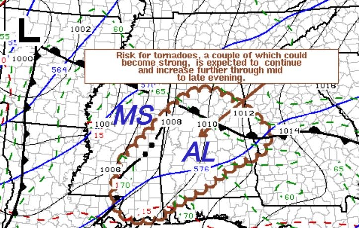 re: Severe weather threat continues today for parts of the southeast - Threat is Over.