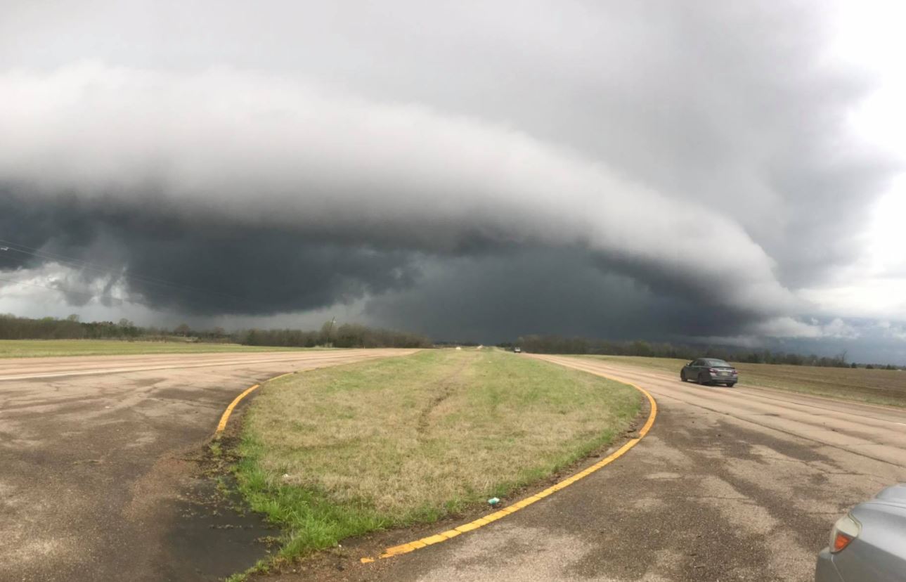 Impressive shot of the wall cloud associated w/ this tornado warned cell near Okolona.. This photo was submitted by Josh with NMSCAS. #mswx