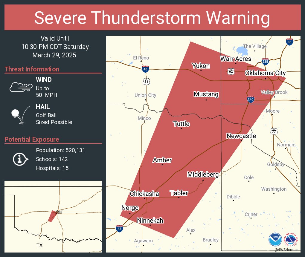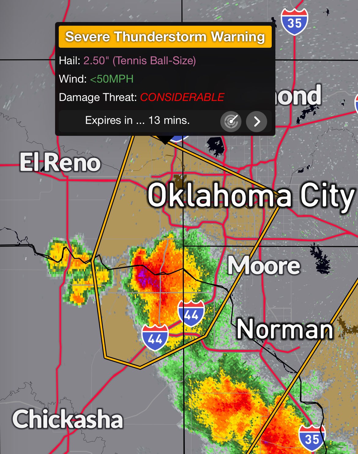 Severe Thunderstorm Warning including Oklahoma City OK, Yukon OK and Bethany OK until 10:30 PM CDT. This storm will contain golf ball sized hail!