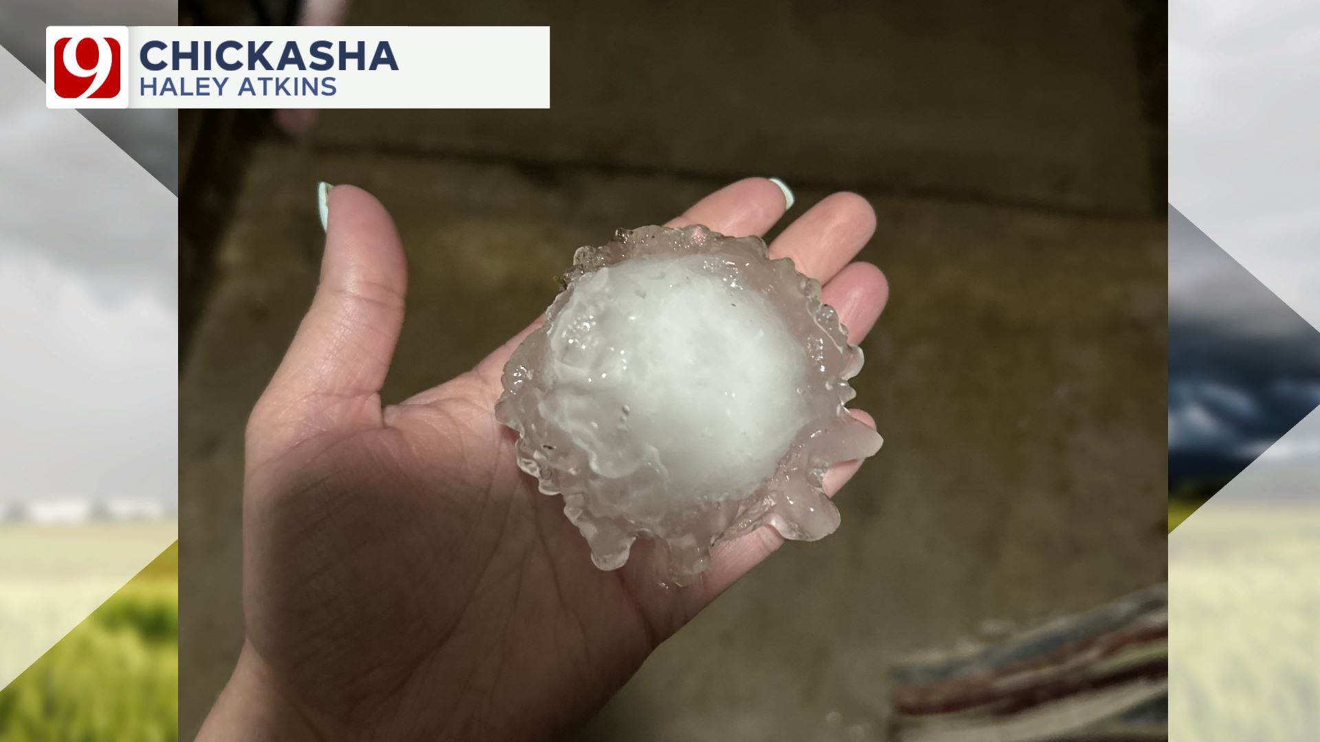 10PM SATURDAY- Big hail in Chickasha!!! This storm is headed into the metro... protect your vehicles!