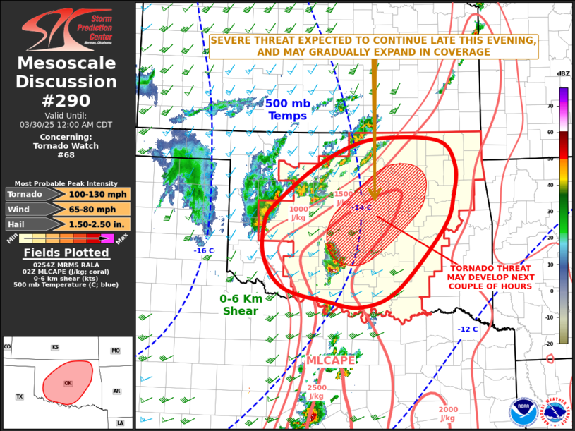 Looks like tornado threat will be east of OKC to me. The front moved into city so behind it is less tornado threat and mostly hail worry
