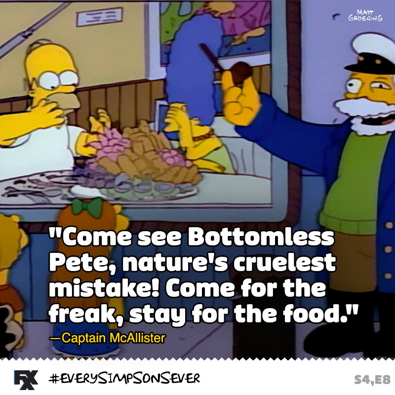 My uncle and his buddy would make an annual road trip to Montana to visit friends. They stopped at an all you can eat fried chicken place once where his buddy had a stack of chicken bones on his plate, the owner came out and told him the buffet was closed to him now,,