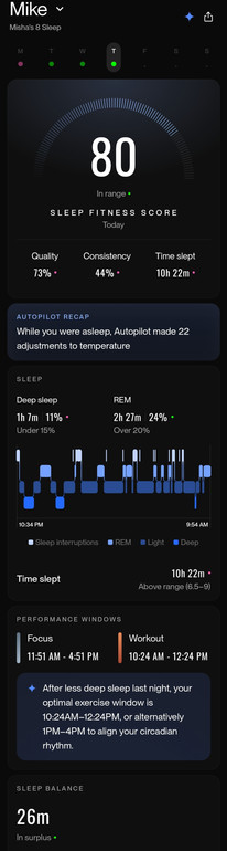 8 Sleep for life. Here's last night's data with 22 AI adjustments made to maximize my rest / recovery