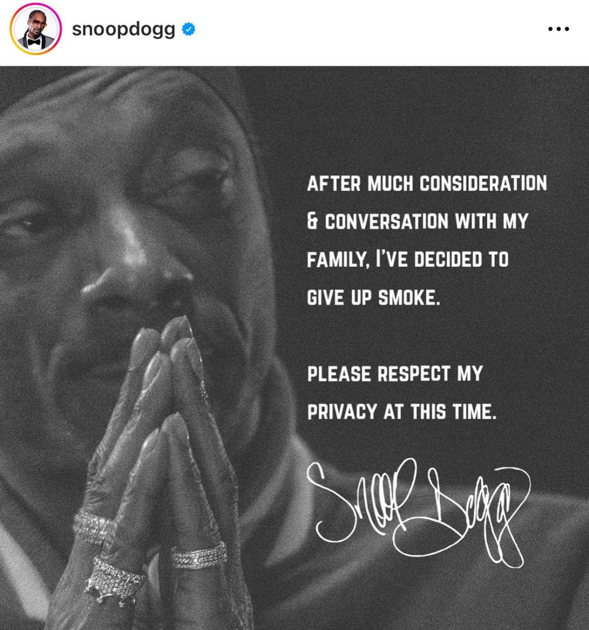 Snoop dog is giving up smoking