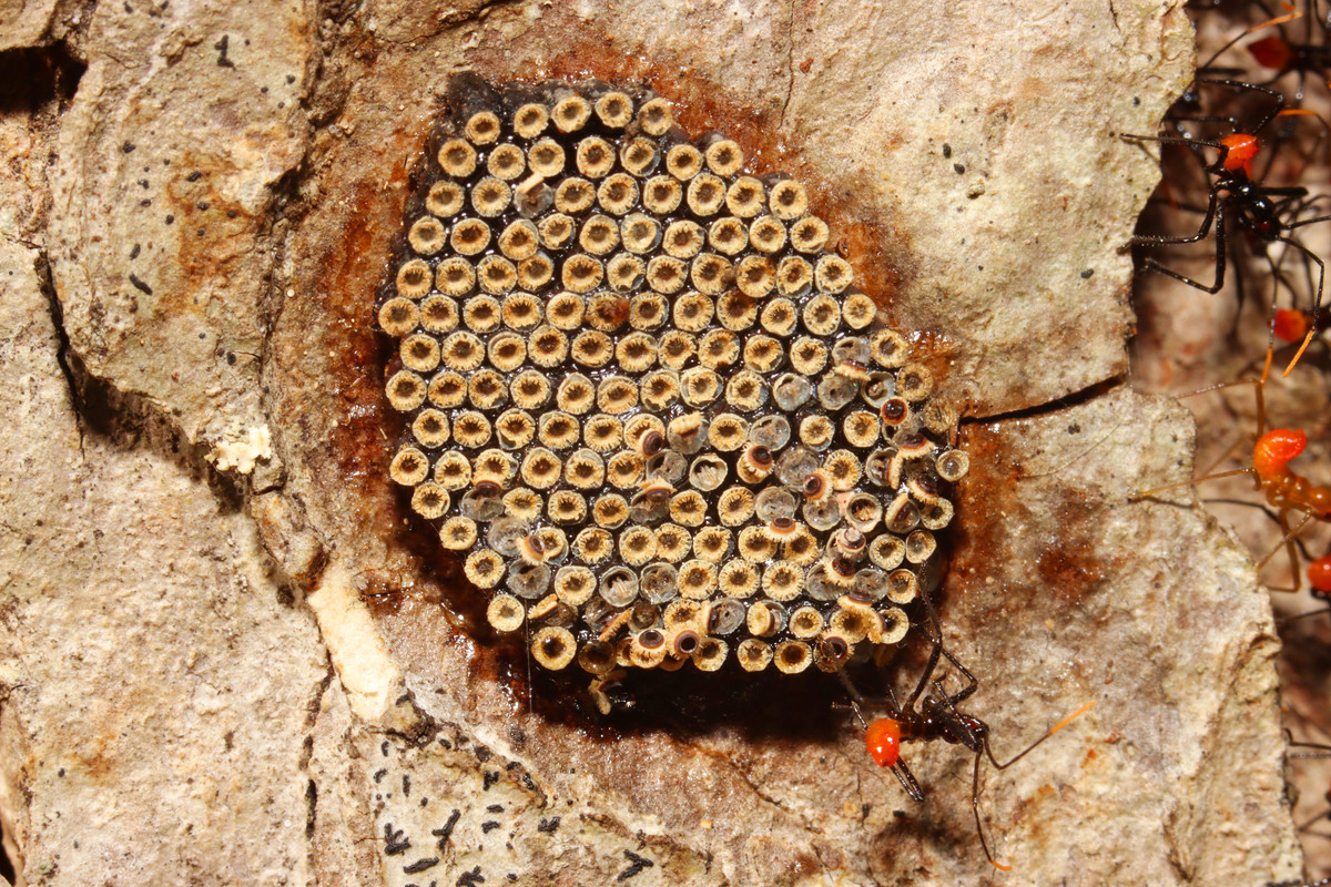 iNat wasn't much help for the eggs, but it did identify the parasitic fly on them.