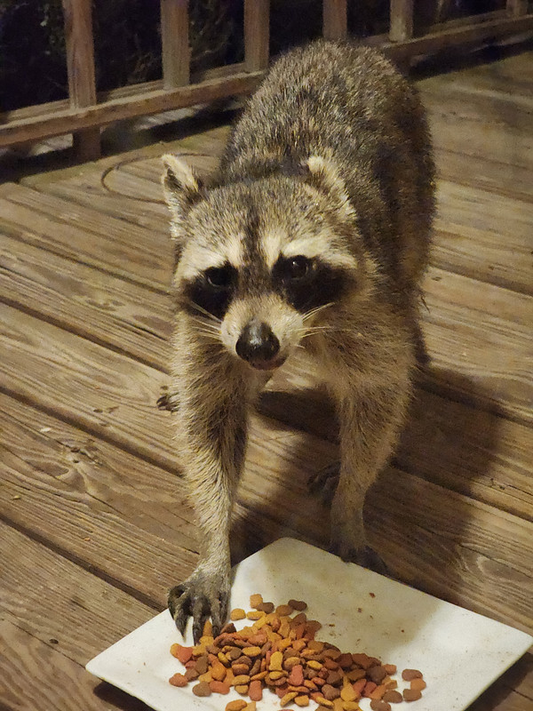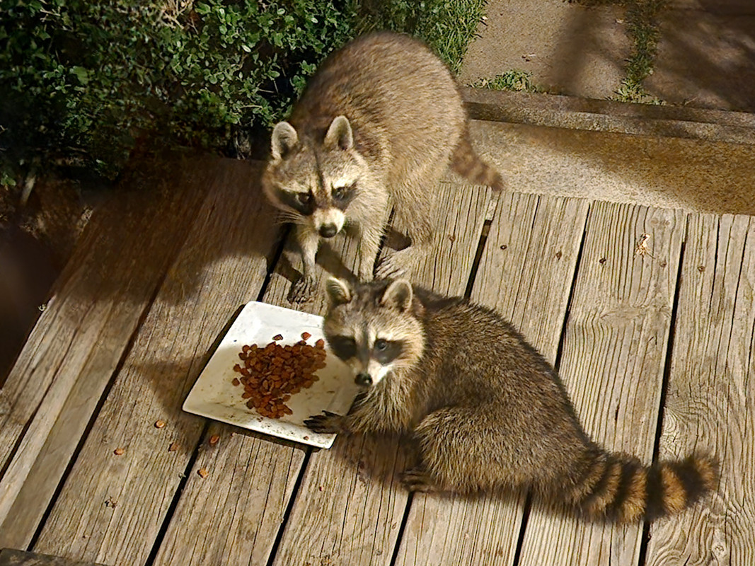 New raccoon friends...these are bad cell phone pics through windows...first is a male I call Vincent, because he's missing part of his left ear...second is a female with a baby, Daisy and Rhubarb
