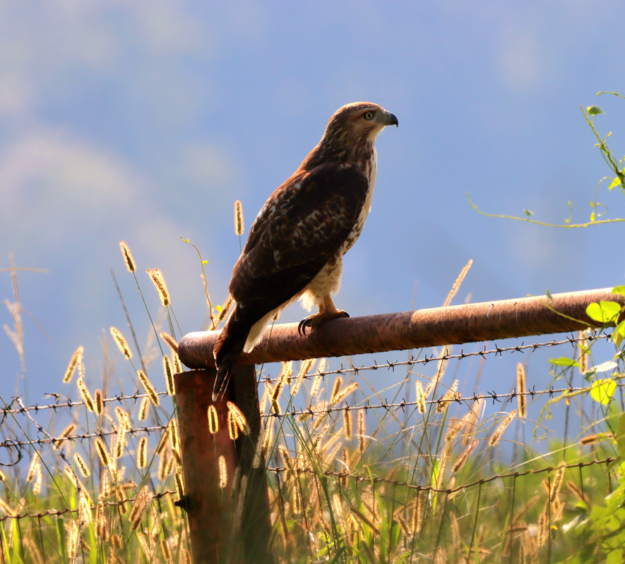 Backlit red tailed hawk
