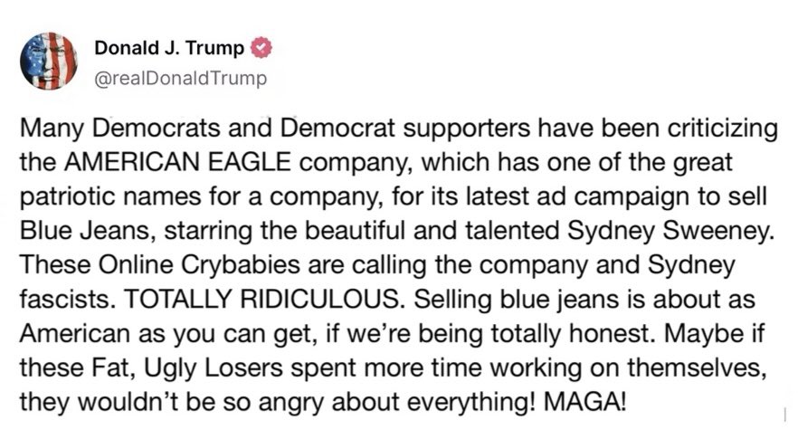 re: Some Folks Are Really Upset About The Sydney Sweeney Ads. Update: AE Responds