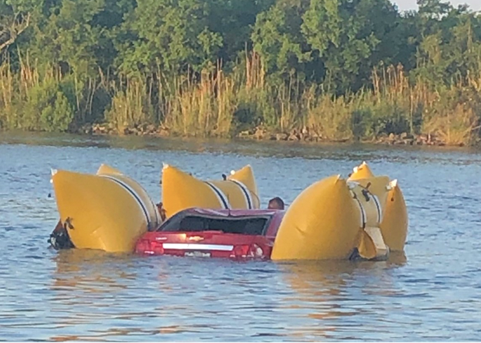 By the time I saw it, looks like they had the car on the levee already.