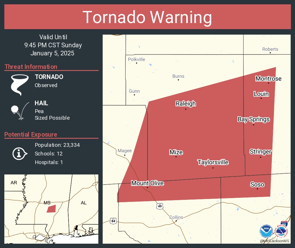 Confirmed tornado (as of a few minutes ago) on the storm southeast of Jackson.