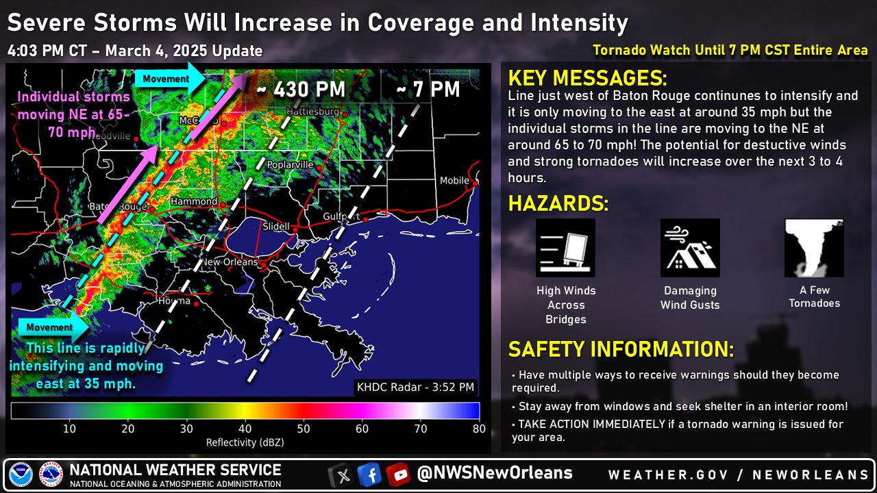 * This dangerous storm will be near... Gonzales and Sorrento around 455 PM CST. Whitehall and French Settlement around 510 PM CST.