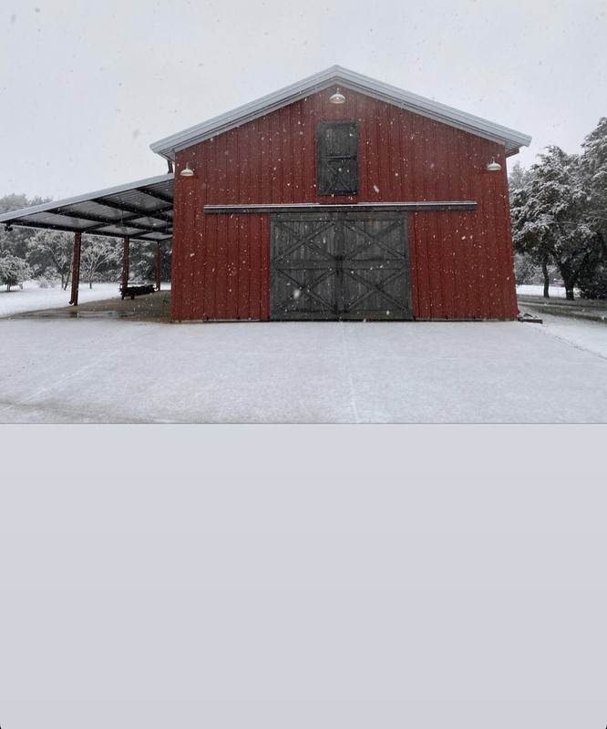 Snowing a good bit north of Austin. Snow already accumulating on the grass. Roofs and cars already covered.