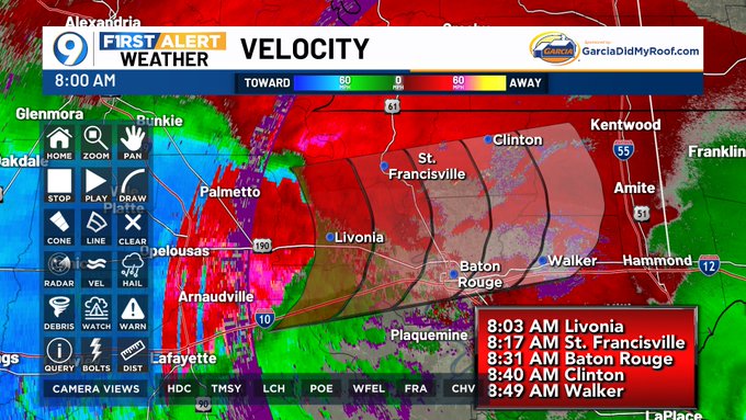 Areas near and north of Baton Rouge should treat this bowing line of storms and its wind damage potential like a Tornado Warning. Widespread damage expected along its path.