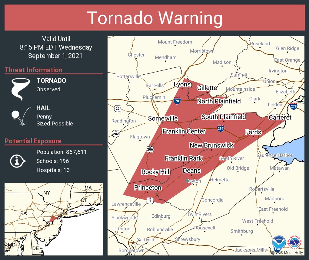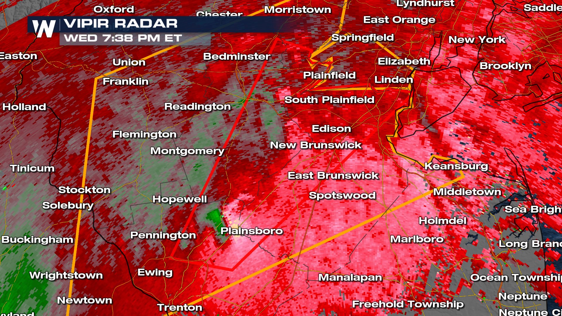 The #tornado warning has moved northeast near Plainsboro. Nearly 1 million people are currently under the warning as it heads towards Plainfield, NJ. TAKE SHELTER IN THE WARNINGS!