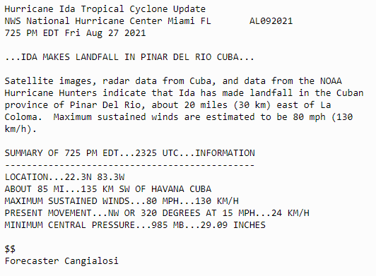So I'm watching this little battle on the western flank, seeing just how much Ida starts to breathe once across Cuba.
