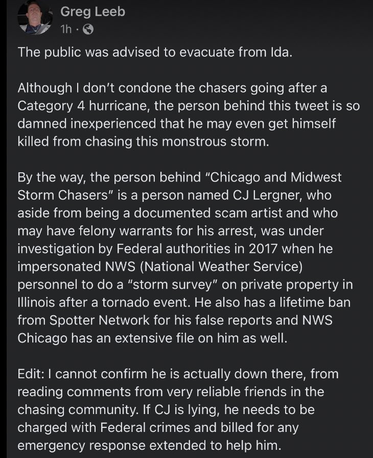 Anyone who saw the storm track and looked at the roads and chose galliano/ Golden meadow/ larose to storm Chase is an absolute idiot.