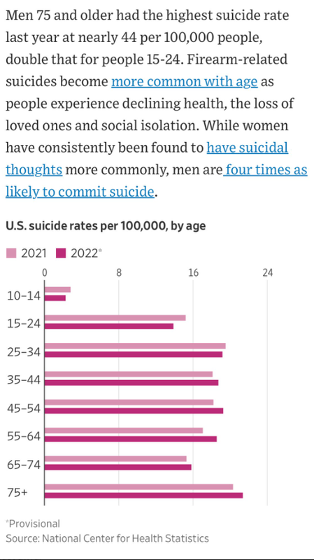 I imagine for the over 75 guys a lot of it is health related. I can see going out on your own terms instead of slowly wasting away in a nursing home from terminal illness.
