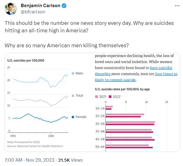 Divorces happen in groups and run through friend circles. This is part of that. Men feel helpless and have always been told to be tough and not show it.