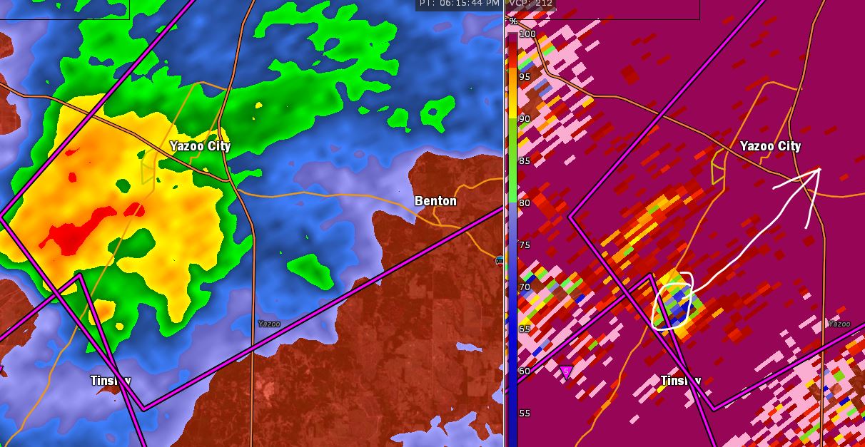That is a real deal TDS right there. It wasn't doing much about 10 minutes ago. It was warned, but didn't look good at all. I guess it figured since it was near Yazoo City, it might as well ramp up.