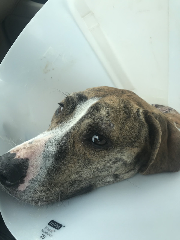 I dropped her off at Metairie small animal hospital since they agreed to take her in for Take Paws. Someone from that clinic adopted her the day she was released. I remember crying like a baby after dropping her off and wiping the blood off my front seat and pants from her wounds.
