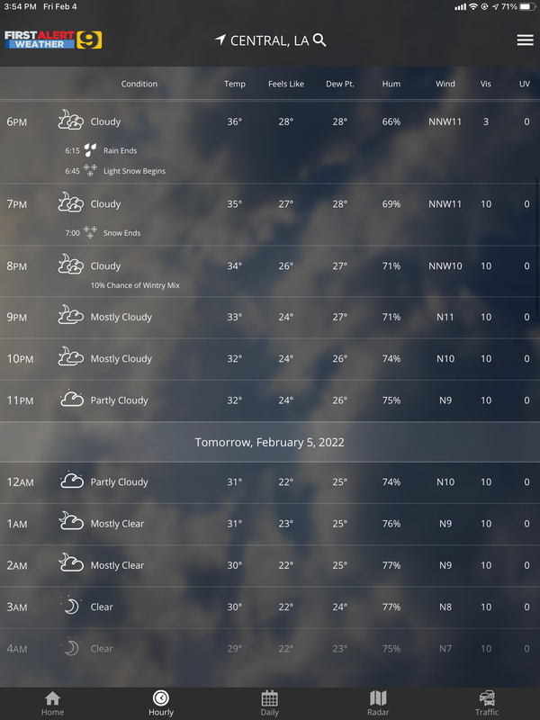 BR gonna get some wintry mix? Radar shows some popping up around 2:30