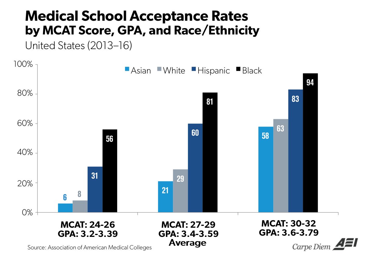 So, essentially a 31 on the MCAT for a white is equal to a 25 for a black.