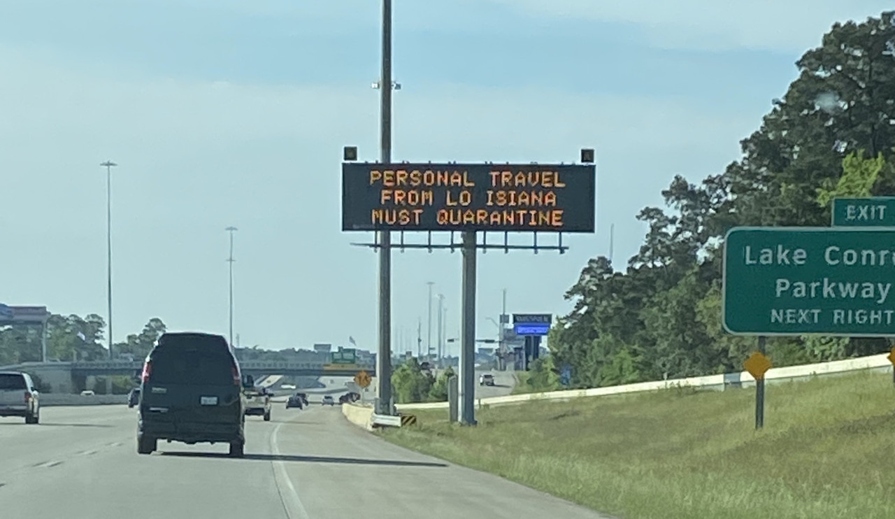 Just a warning to those going to Texas on I-10 westbound, they have a state trooper on the bridge right past the state line and a sign that says, “All Passenger Vehicles Must Exit For Covid-19 Screening.” There’s a trooper next to the exit to the rest stop and two separate lanes with troopers manning them.