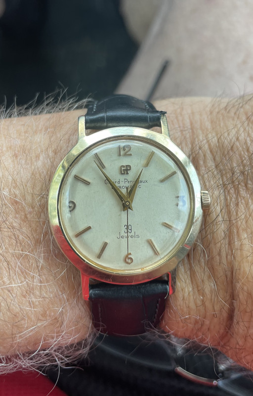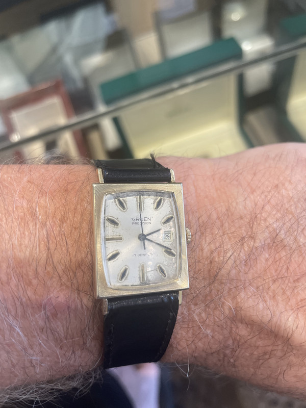 14k gold Gruen, paid $400 plus getting it serviced right now, it was only taking 30 secs for the second hand to go around 1x