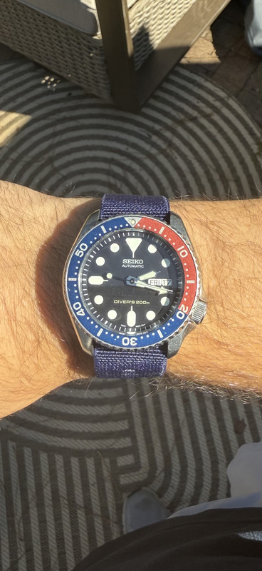 I’ve been wanting to get a SKX back in the collection after letting a lady borrow my 007 back in my LSU days and never seeing it again. The fading on the Pepsi bezel is pretty rad in person and the red “Diver’s 200m” has degraded to yellow. Given how dark the dial is, this may be a 007 that someone stuck a 009 bezel on. It’s been fun throwing it on different straps: