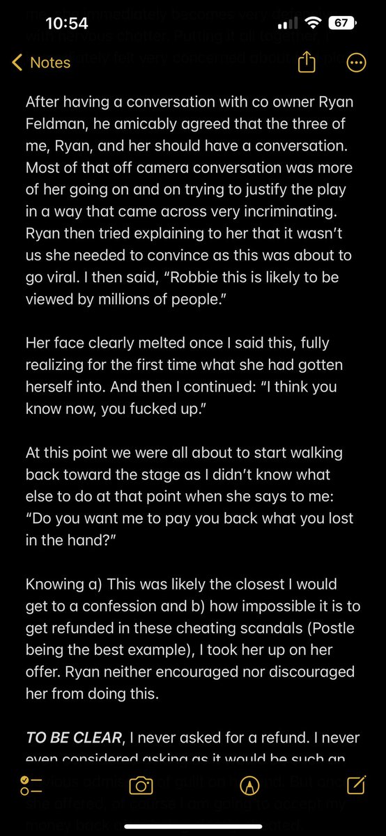 3. lastly, if Garret would've made the winning hand on the river and won the pot, would he make this an issue of this hand?