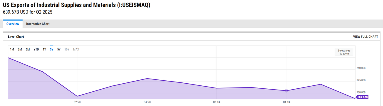 exactly. all the tariffs did was make it more expensive to obtain the cheaper parts our manufacturers use to make more advanced, expensive products and make our companies less competitive globally price-wise. Exports are down.