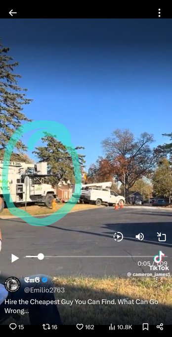 I’m videoing the shite show me hen hopsing drives a Nissan Morano into the backyard and proceeds to attach a ratchet strap to tree coupled on front bumper. No need for his helper to continue holding the dolla general rope tied 6’ up tree. Me I’m ready to dial 911 and ask them to send the body wagon for this dude but it eventually fell.