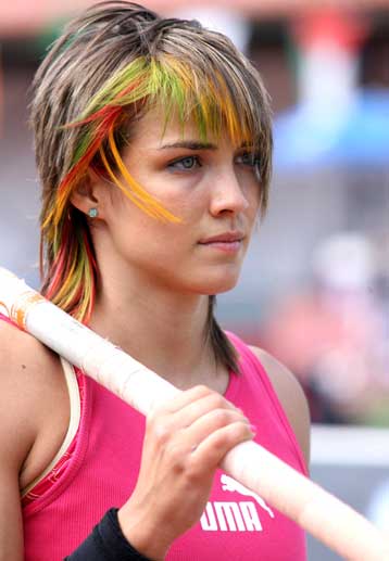 It's going to be track, there's a pole vaulter behind her. I've been digging through the results from international meets in that time frame but none of the names come back to her