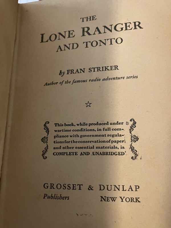 I have 4 of these old Lone Ranger books from 1940. The “wartime conditions stamp I thought was cool.