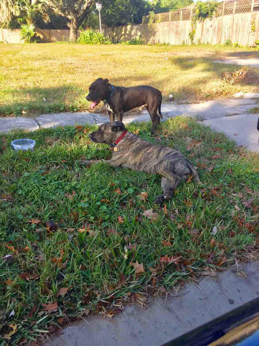 This morning there were 2 pitbulls (see photos) who were wondering the streets on Taft Park in Metairie. An elderly lady was walking a small dog there. They attacked her and the dog. She fell down, hurt herself and she has bite marks on her hand because she was trying to protect her dog. Her dog has bites all over his neck and head. EMS and Animal control were called. An man and a woman were walking behind the dogs. They had leashes with them but not on the dogs. These people disappeared once the incident happened. Animal control picked up the pitbulls. Wondering if anyone knows whose dogs those are and be careful around Taft, they will probably be returned to the owners and do this again.