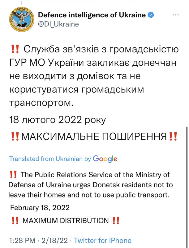 Last thing he said is it's hard to see Russia doing all this without an aggressive action coming. Maybe not full on invasion, but they are about to bring down hell on the East and contact line at a minimum, is his best guess.