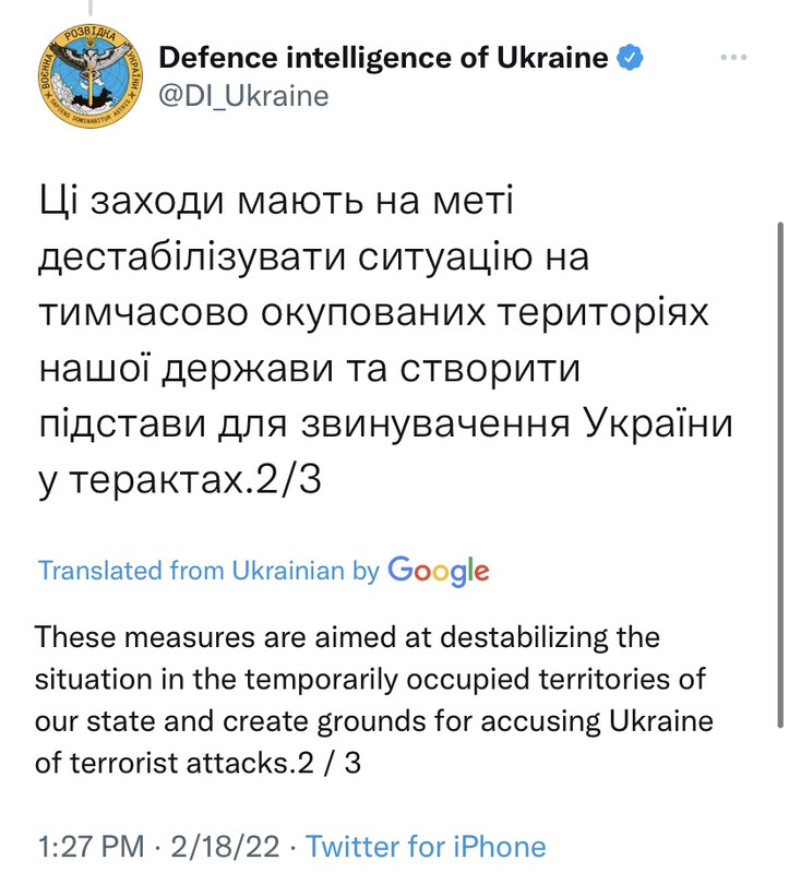 Last thing he said is it's hard to see Russia doing all this without an aggressive action coming. Maybe not full on invasion, but they are about to bring down hell on the East and contact line at a minimum, is his best guess.