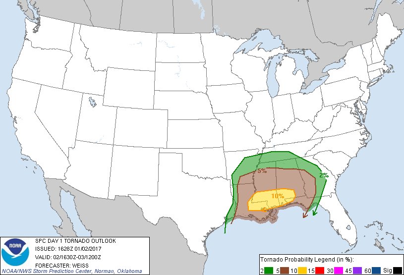 Louisiana where it intersects a pre-frontal squall line. Widespread