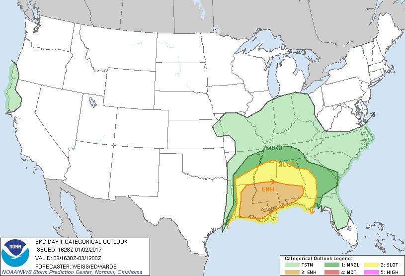 Louisiana where it intersects a pre-frontal squall line. Widespread