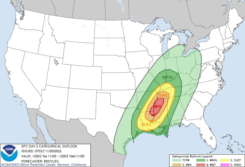 0241 AM CST Sun Nov 27 2022 Valid 291200Z - 301200Z