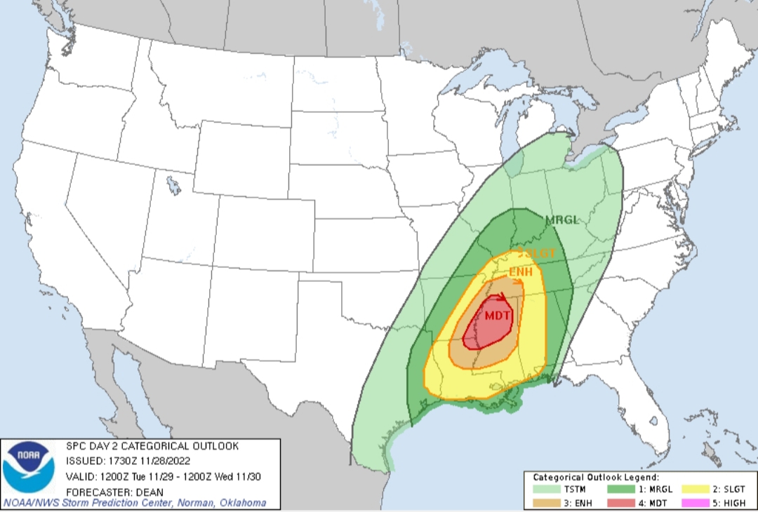 It is strongly encouraged to understand your threat category based on your location for storms forecasted Tuesday afternoon. A reminder, just because your threat level may be lower than another does not mean you should let your guard down. Be weather ready for any situation.