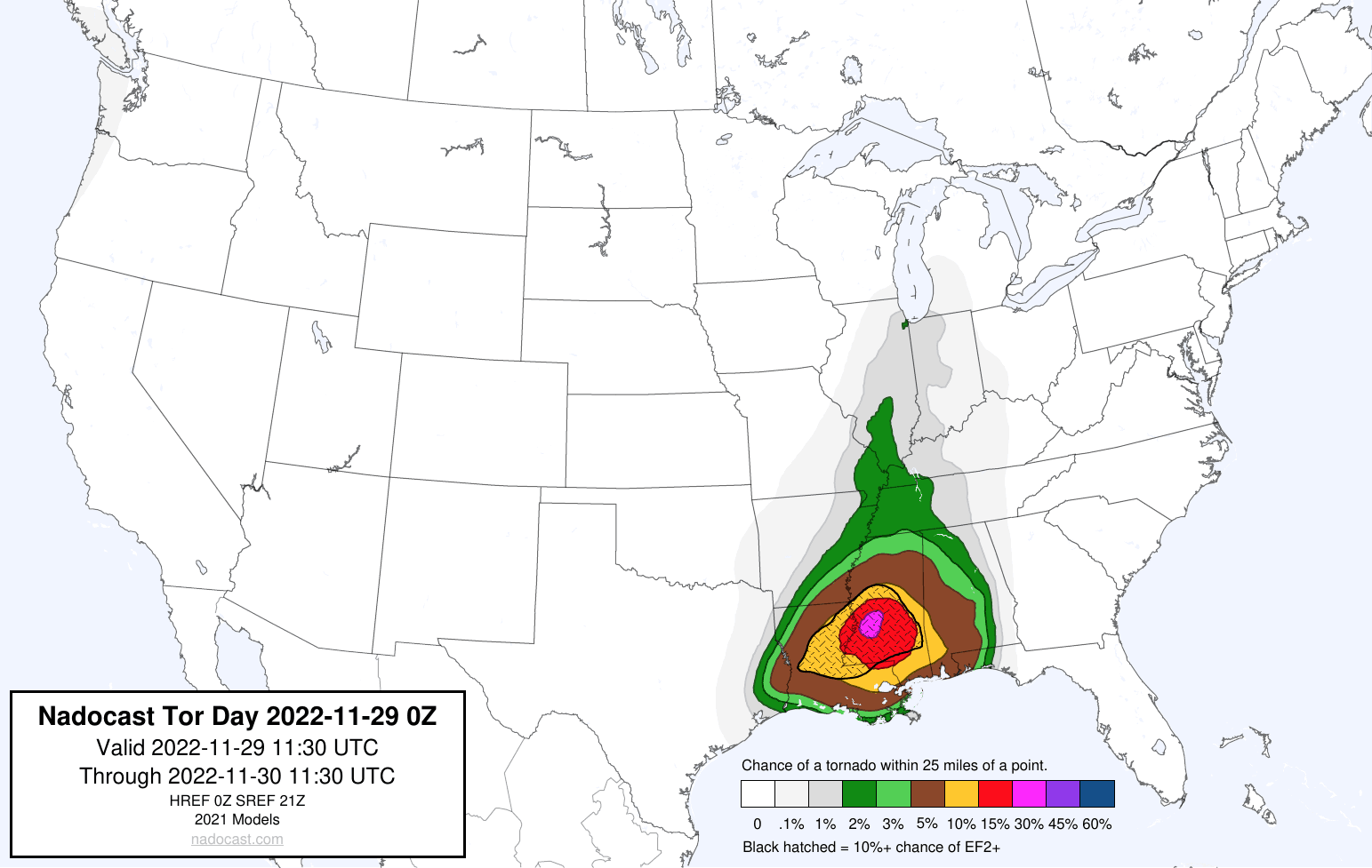 Nadocast has caused a kerfuffle today. It is significantly farther South than the SPC MOD. They differed last December, too, and SPC came out on top.
