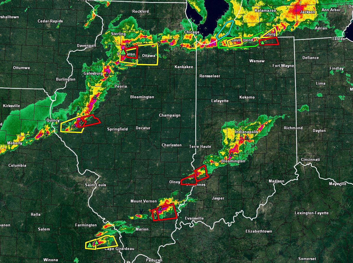 Cell in MO was just warned but hasn't shown up yet. Other ongoing warnings in red.