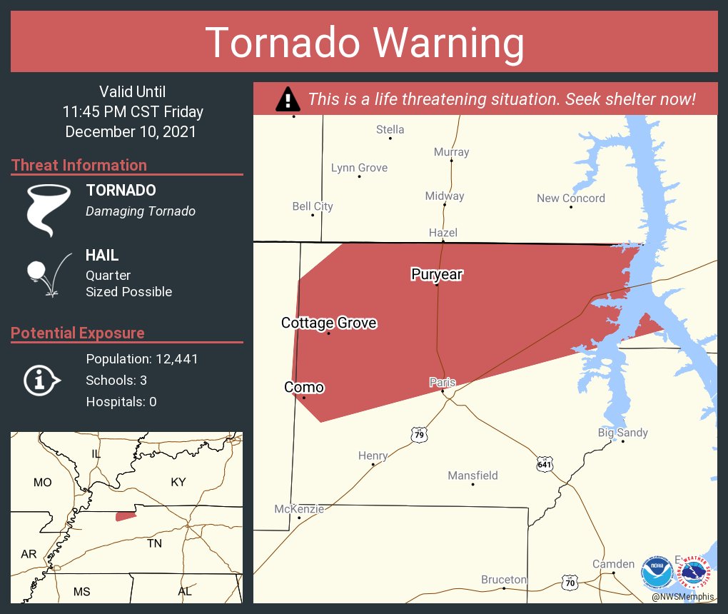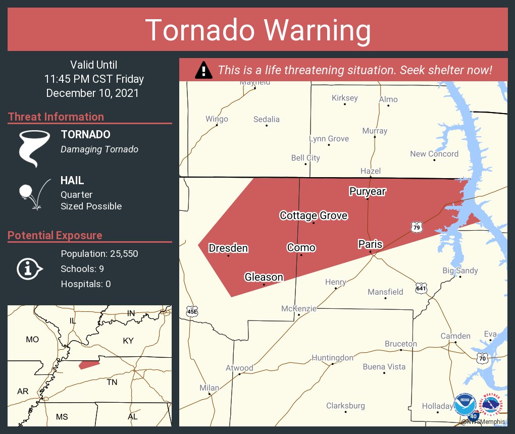 Large and extremely dangerous tornado remains on the ground near Cottage Grove, TN.