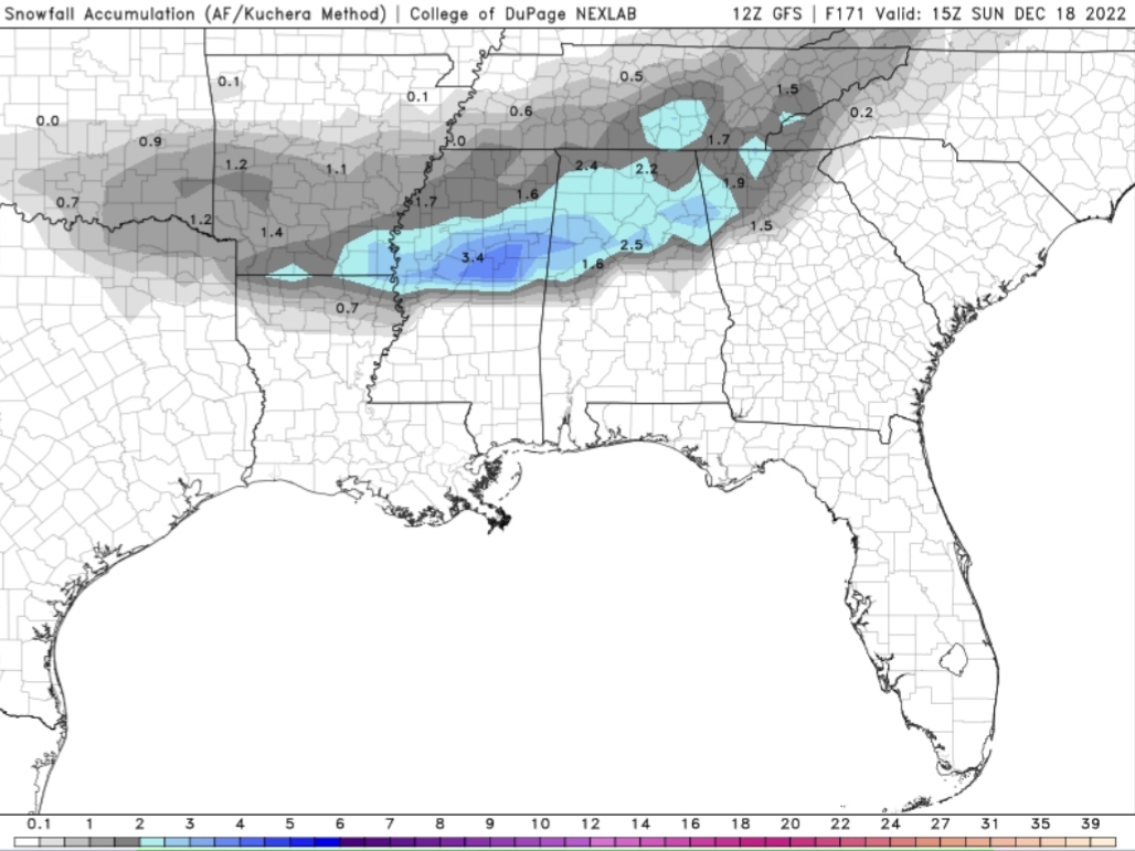I will be in Jackson, MS for December 24-25, how are we looking for snow in the Jackson, MS area? My son wants to see snow while we are up there.