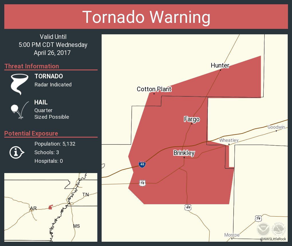 I'm 20 miles South of Brinkley, it's coming through Stuttgart now