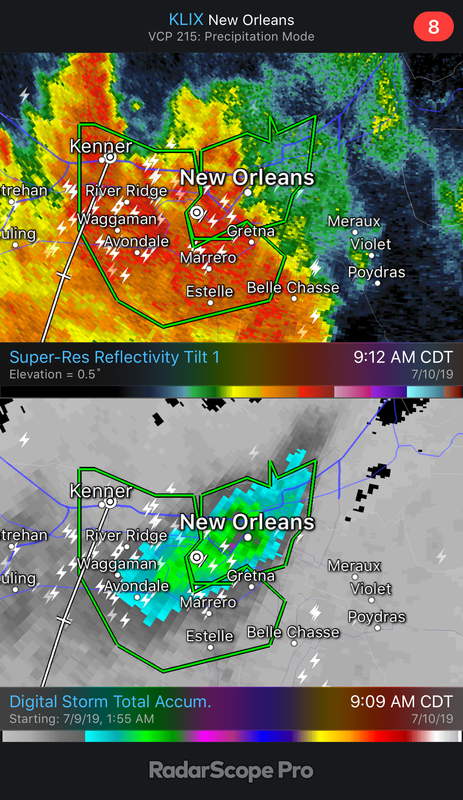Radar estimates indicate areas in New Orleans that have already received 7+ inches of rain