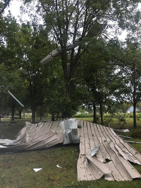 This is Four Seasons Bowling Center off N. Mall Dr. in Alexandria after the severe storm. The side of the building was ripped off.