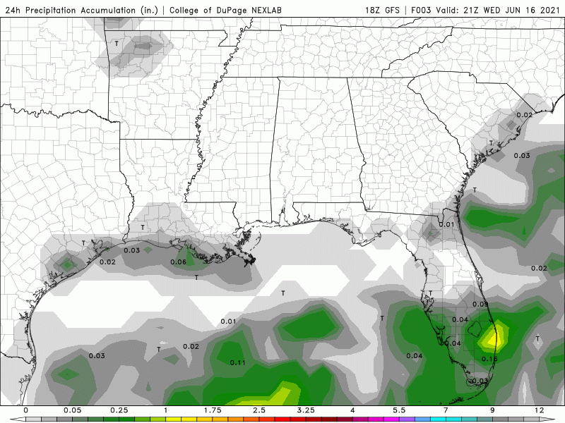 18z GFS 24Hr Accumulated Rainfall through the 21st.