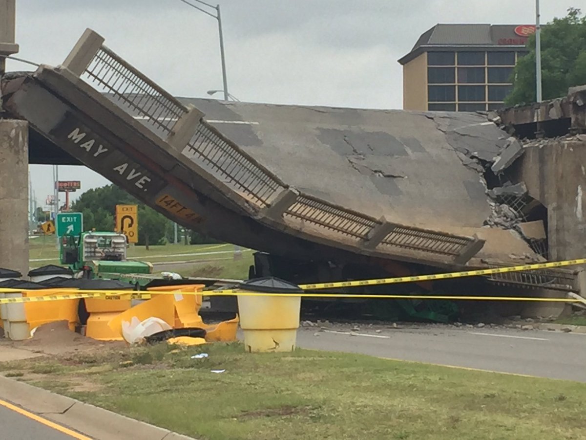 Truck w/ boom lift hits bridge causes bridge collapse in OKC